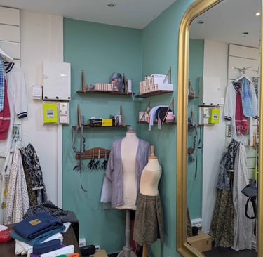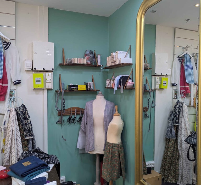 Ma rencontre avec Virginie remonte à 2015, lors de mon premier stage à l’Atelier Léonie pendant mes études. Elle m’a guidée et conseillée tout au long de mon parcours, et, en 2022, elle m’a confié un projet très spécial : la création de sa robe de mariée. Après mes études et une période d’intérim, j’ai décidé de lancer L’Esprit Ailleurs, mon univers créatif. Quand Virginie a déménagé sa mercerie, elle m’a proposé de collaborer pour donner des cours de couture. C’est ainsi qu’est née cette aventure commune.